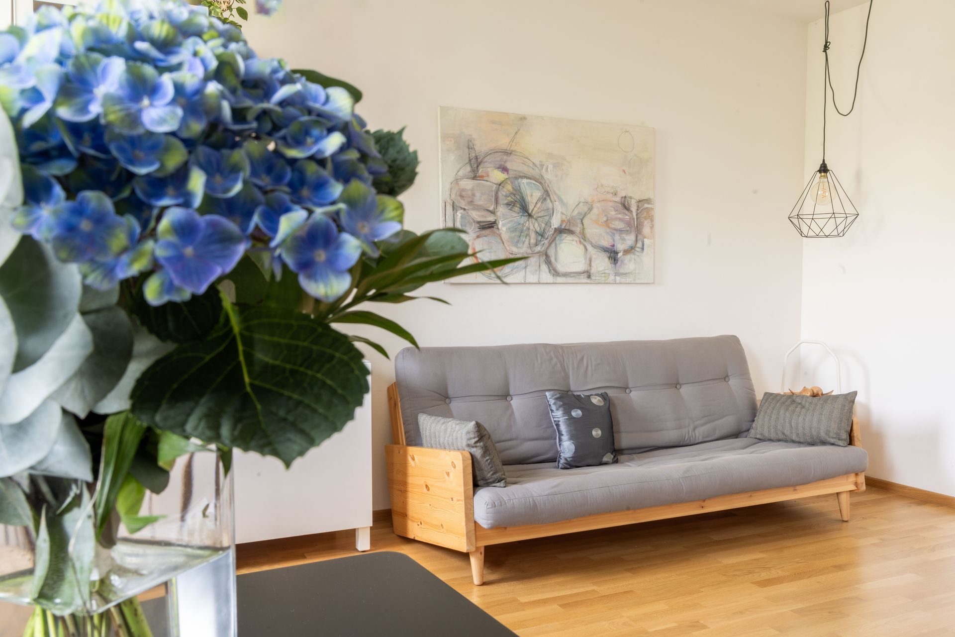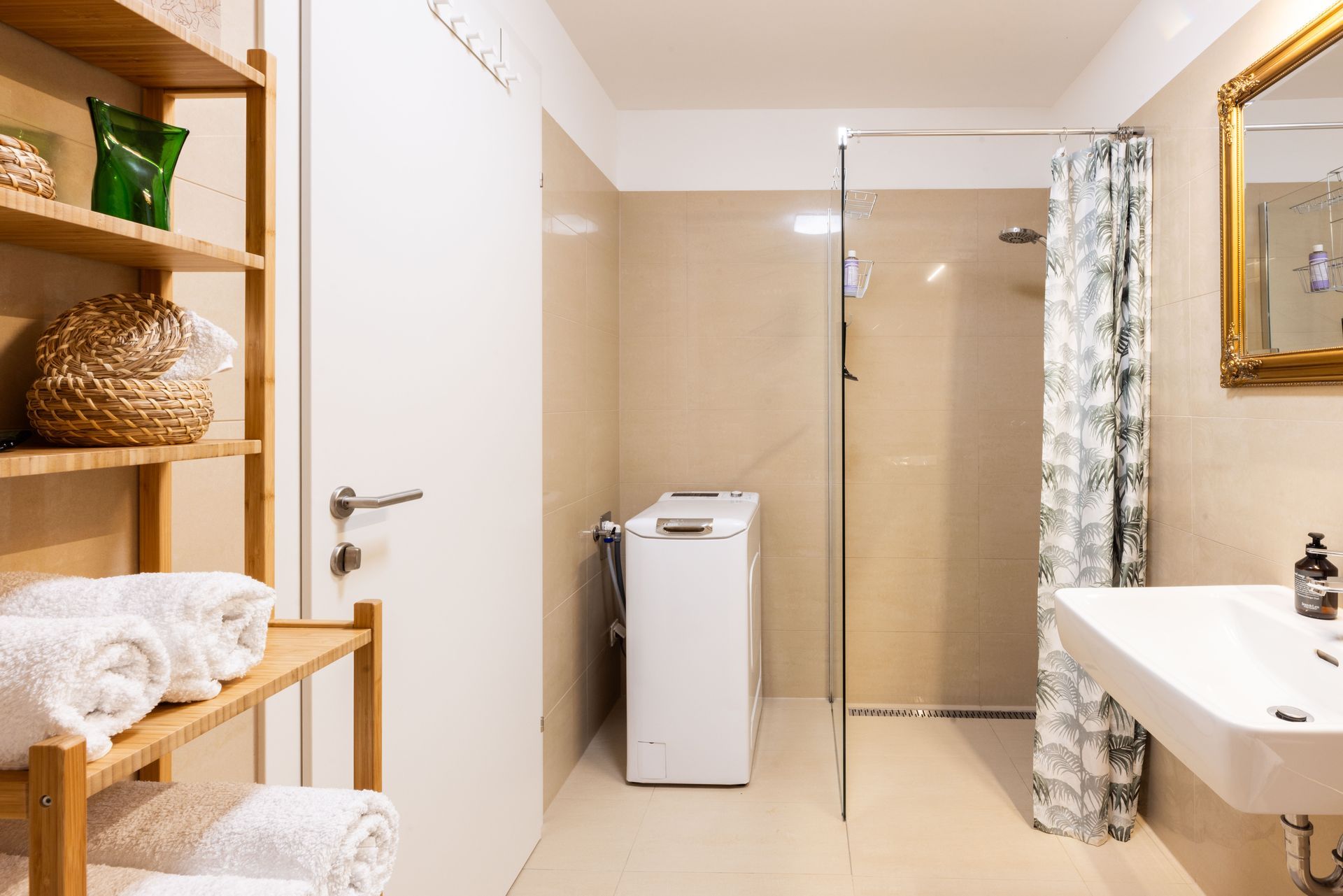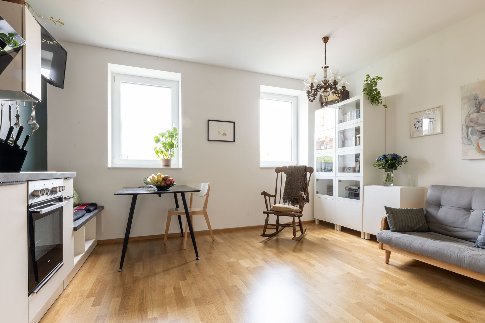 Die Wohnküche ist vollausgestattet und mit ihrer gemütlichen Sitzecke mein Lieblingsplatz, Konkurrenz macht dem nur die chillige Fensterbank im Schlafzimmer. Das große Doppelbett verspricht einen erholsamen Schlaf, genau wie auch die ausziehbare Couch. Im Badezimmer gibt es sowohl eine ebenerdige Dusche, als auch eine Badewanne zum Relaxen. Die Toilette ist separat und vom Vorzimmer aus begehbar. Es gibt WiFi, einen Smart-TV und eine Waschmaschine.